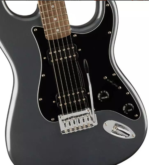 Электрогитара SQUIER by FENDER AFFINITY SERIES STRATOCASTER HH LR CHARCOAL FROST METALLIC — это отличный выбор для современного начинающего гитариста. Хотя она может похвастаться тонкой декой из тополя и С-образным кленовым грифом, возможно, именно мощная пара хамбакеров, обеспечивающая насыщенное звучание, является ее самой привлекательной чертой!