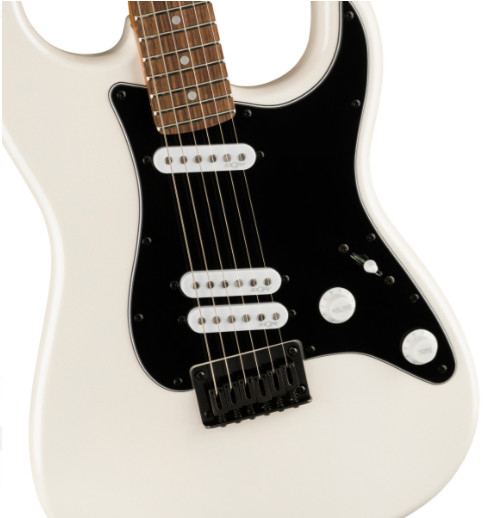 Привлекающие внимание элементы стиля SQUIER BY FENDER CONTEMPORARY STRATOCASTER SPECIAL HT PEARL WHITE включают незаметную черную фурнитуру и гладкую окрашенную голову грифа с хромированными логотипами для превосходного внешнего вида.