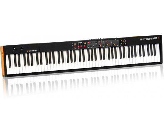 FATAR-STUDIOLOGIC NUMA COMPACT 2 - сценическое пиано. 88 полувзвешенных двухсенсорных клавиш (TP/9 PIANO) с функцией послекасания (Aftertouch). 4 режима чувствительности клавиш. Максимальная полифония 128 голосов. 88 звуков. До 6 одновременных эффектов. 99 пользовательских программ, 1GB памяти для семплов. Функция наслаивания 2х звуков или разделения клавиатуры. Акустическая система 10 + 10W. Контроллеры высоты тона и модуляции. 2 аудио выхода, вход для наушников. Вход для педали экспрессии.