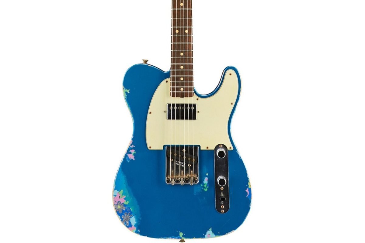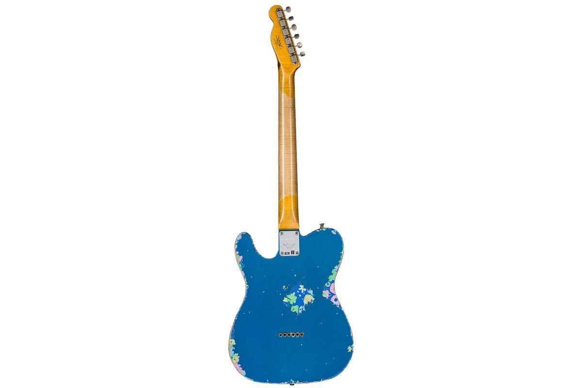 Электрогитара, кастом-шоп, лимитированное издание, искуственно состаренная. Телекастер, дека - ольха, гриф - клен/палисандр, звукосниматели - Handwound Twisted Tele® в бридже, EVH Wolfgang Humbucker - в неке, цвет - Aged Lake Placid Blue over Blue Flower, кейс