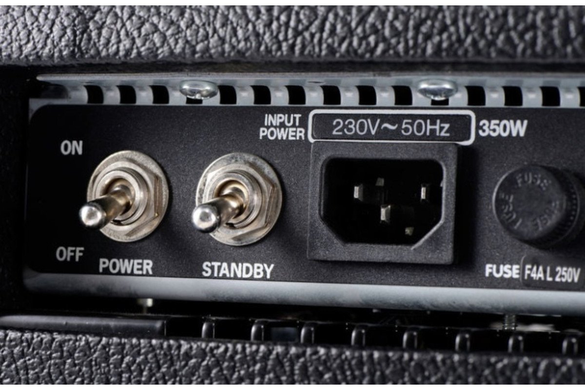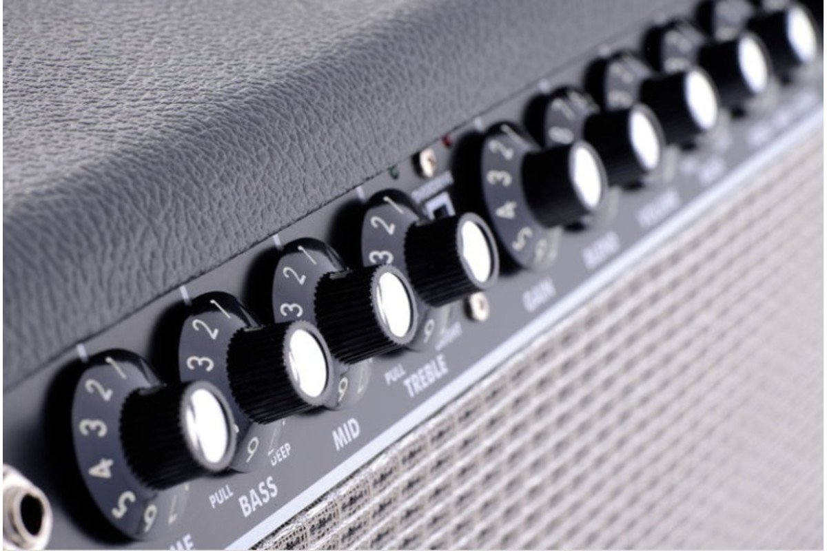 Внутри FENDER BASSMAN 100T находятся 2 лампы предусилителя 12AX7, 4 лампы усилителя мощности 6L6 и одна 12AT7. Система Fender Automatic Bias постоянно контролирует состояние ламп и осуществляет автоматическую подстройку для получения наилучшей производительности. Элементы управления, 2 входных разъема 1/4 "и красный индикатор включения размещены сверху в ряд на панели, выполненной в цвет корпуса. Управление каналом Vintage: Volume и 3-полосный эквалайзер (BASS, MID, TREBLE). Управление каналом Overdrive: Volume, Gain, Blend, BASS, MID FREQ, MID LVL, TREBLE. Также есть общий регулятор громкости Push / Pull, с возможностью мгновенного глушения звука.