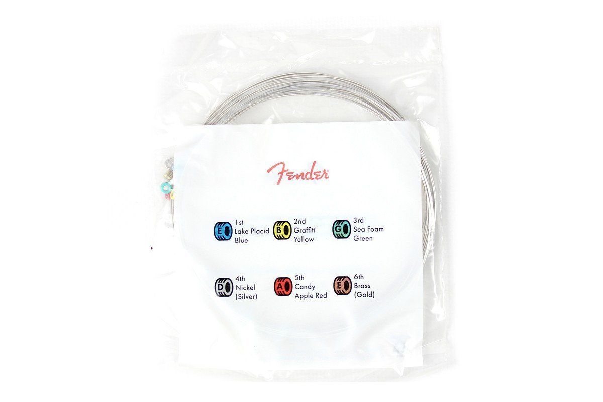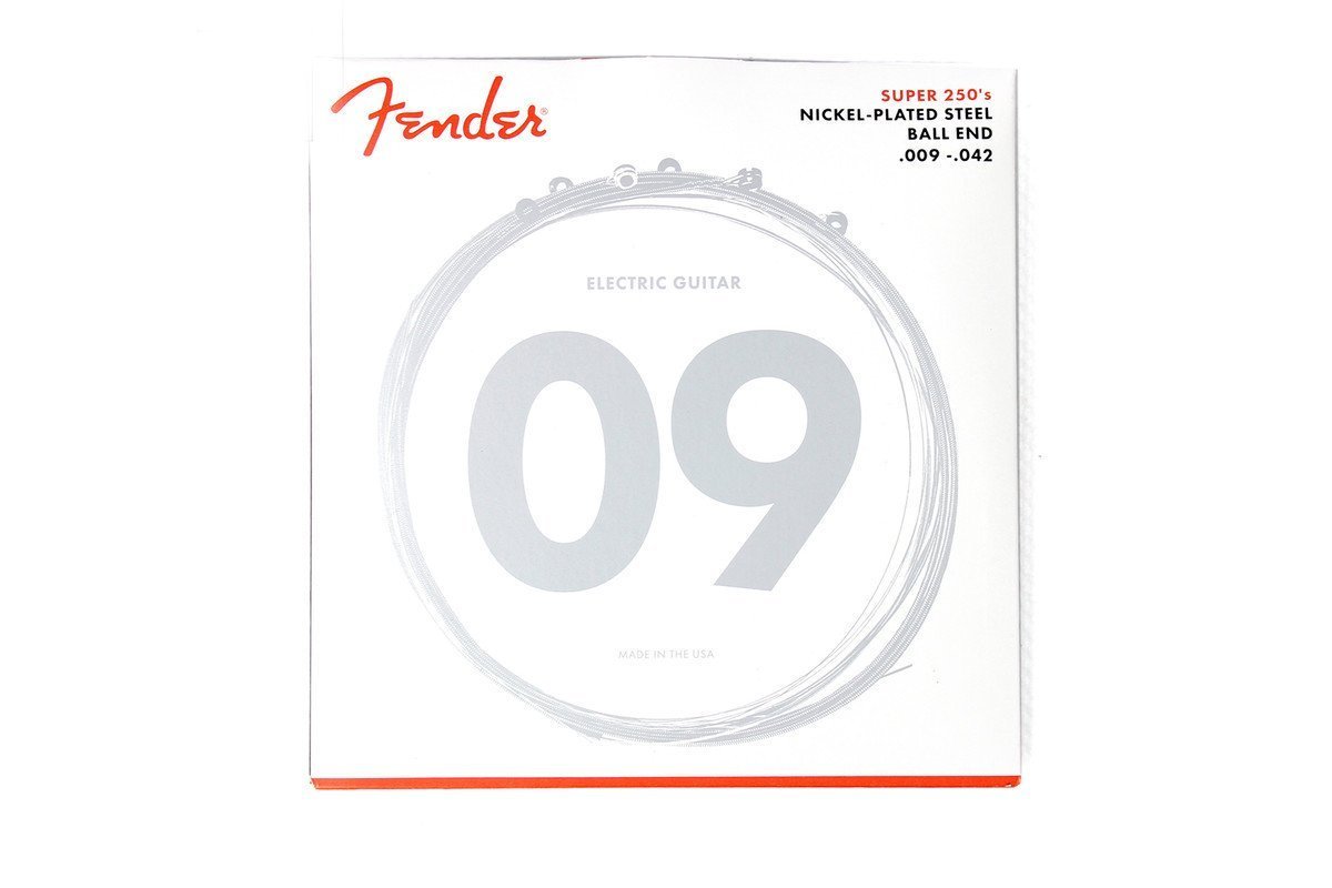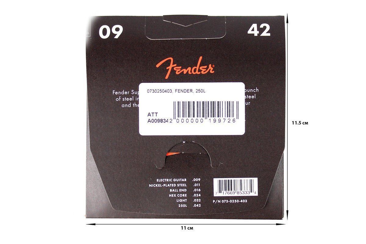 FENDER 250L - струны для электрогитар сделаны из никеля, который считается лучшим материалом для данного продукта. Как результат - максимально чистое звучание. В комплекте идет 6 струн с калибром: .009, .011, .016, .024, .032 и .042 с натягом Light.