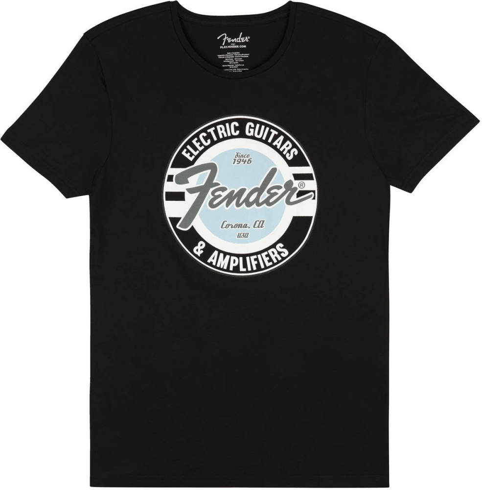 Футболка Fender T-Shirt Guitar And Amp Logo Men'S Black/Daphne Blue M (9193010517)