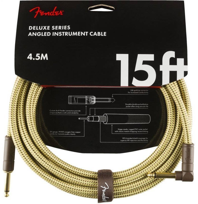 Кабель инструментальный Fender Cable Deluxe Series 15' Angled Tweed (990820086)