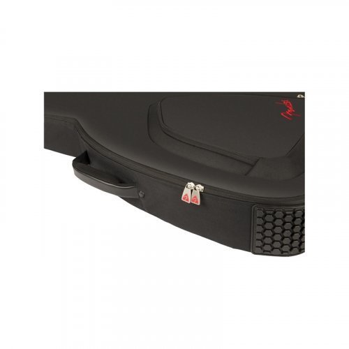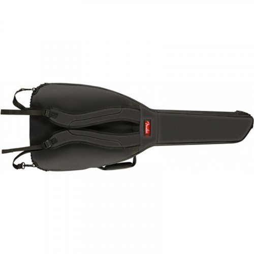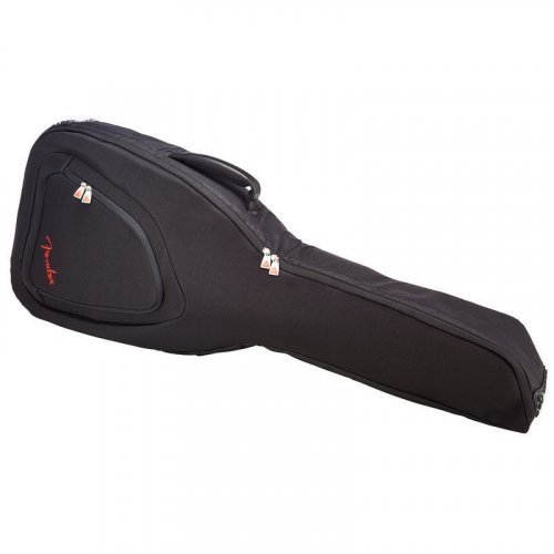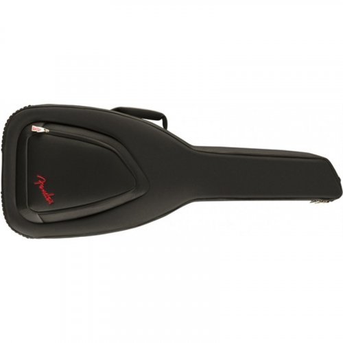 Чехол FENDER FA610 DREADNOUGHT GIG BAG представлен в черном цвете с контрастной красным логотипом «Fender».