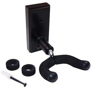 Крюк гитарный настенный Gewa Особенности: Подходит для всех акустических и электрогитар. Вращающаяся вилка из ольхи с резиновым протектором. Размеры: 130 x 45 x 20 мм. Материал: металл. Держатель длиной 19 см. 5 позиций вилки. Крепится винтами. Поставляется с винтом и дюбелем. В комплект входит переходник для плоских стен. Вес: 350 г. Цвет: черный.