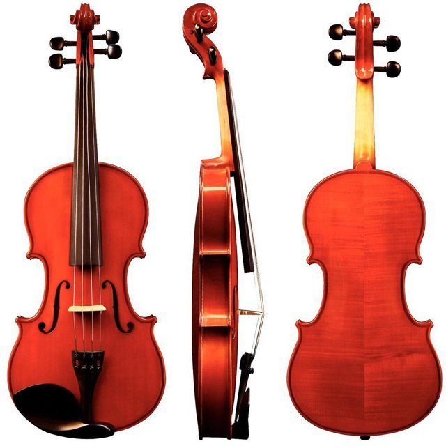 Корпус покрыт красно-коричневым лаком. Струнодержатель Wittner с микропидстройкою, оригинальная подставка Aubert, струны Thomastik-Vision. Подбородник и фурнитура из черного дерева.
