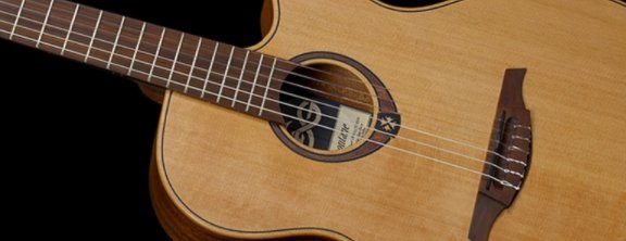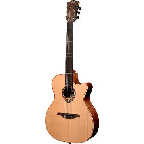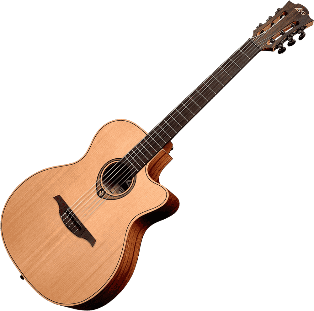 Гитары Lag - это уникальный синтез традиций гитарного мастерства и новаторского дизайну.Класична модель 6-струнной гитары со встроенным звукоснимателем и вырезом , полноразмерной (4/4) декой «аудиториум» .Покриття Satin.