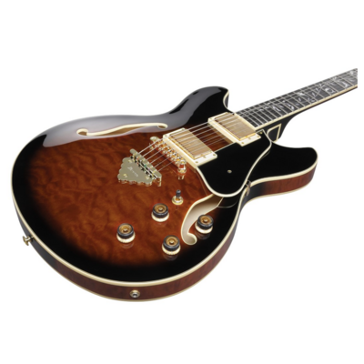Ibanez AS93QMSP DBS – полуакустическая гитара, 6 струн, серия AS Artcore Expressionist, корпус Hollow Body, материал корпуса – клен, гриф – 3 части ньято/клен с накладкой эбони, профиль грифа – AS Expressionist, лады 22 Medium, мензура 24.7" (628 мм), звукосниматели (H-H) – Super 80, бридж – Gibraltar Performer Quik Change Classic, цвет – сенберст.