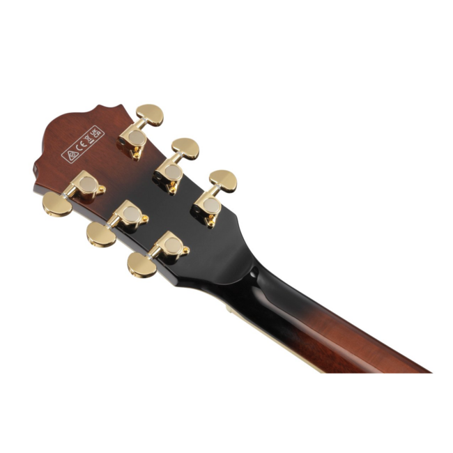 Верхняя, нижняя дека и обечайки из стеганого клена не только придают инструменту премиальный внешний вид, но и акустически обогащают его отклик, особенно при игре медиатором.