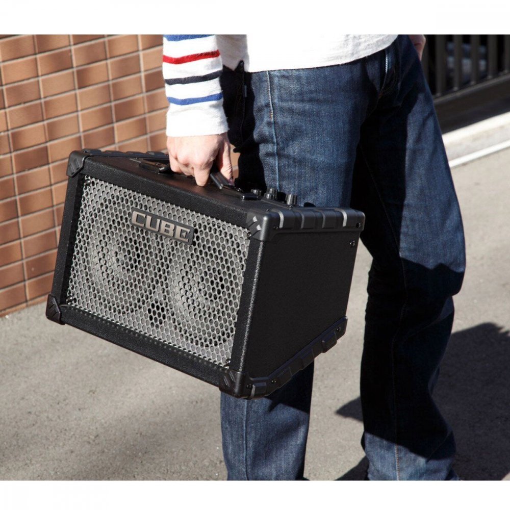С таким маленьким размером и питанием от батареек, CUBE Street был хитом среди уличных музыкантов. Сейчас, новый CUBE Street EX представляет популярный мобильный усилитель с огромным потенциалом для выступлений. Мощностью 50 ватт и системой стерео динамиков, новый CUBE дает чистый, яркий звук, а 4 независимых канала дают возможности подключения различных инструментов и микрофона. Встроенные типы усилителей COSM, раздельные эффекты и эквалайзер. Возможные режимы питания позволят вам работать с усилителем в течение 20 часов всего от 8 батареек АА. Ну а два усилителя могут быть «подлинкованы» для еще более уверенного звука. И вместе с разъемом i-CUBE Link вы можете использовать свой iPhone или iPod