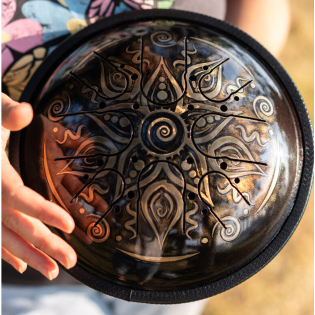 Маленький Пазз – легкий и компактный инструмент. Он весит всего 1,3 кг и имеет диаметр 25 см, поэтому с ним приятно медитировать и путешествовать, отдаваясь музыке там, где вас найдет вдохновение. Это совершенный инструмент для детей и взрослых, испытывающих в себе тягу к музыке. На корпусе этого глюкофона расположены 8 нот-лепестков, которые откроют вам новый мир интуитивной музыки.