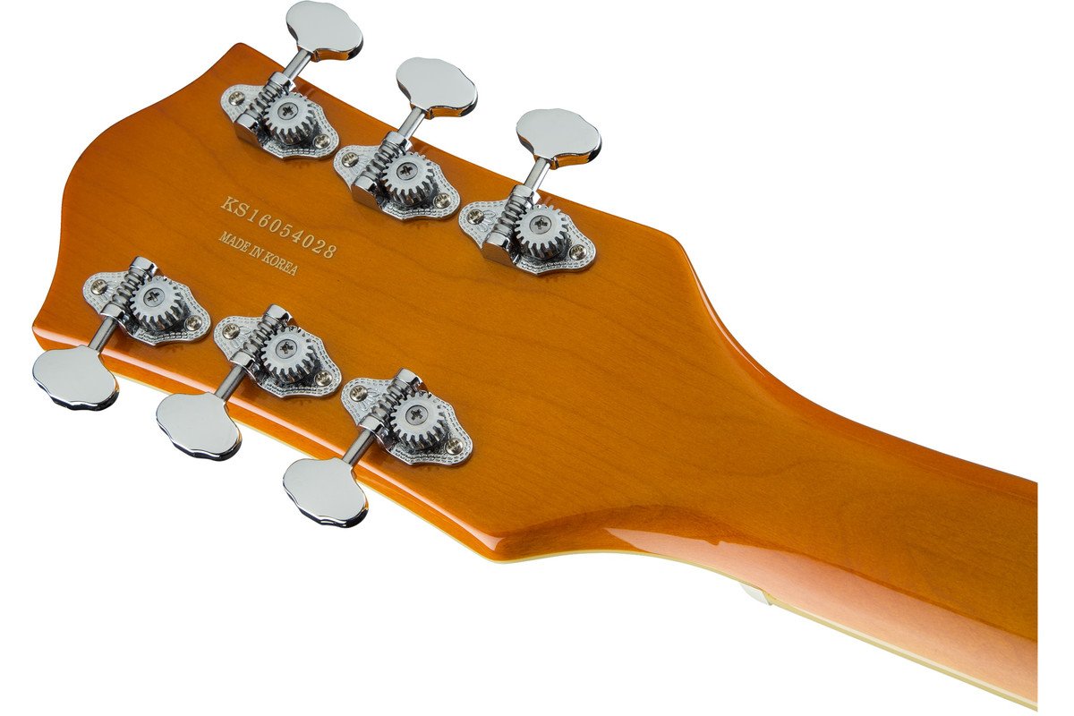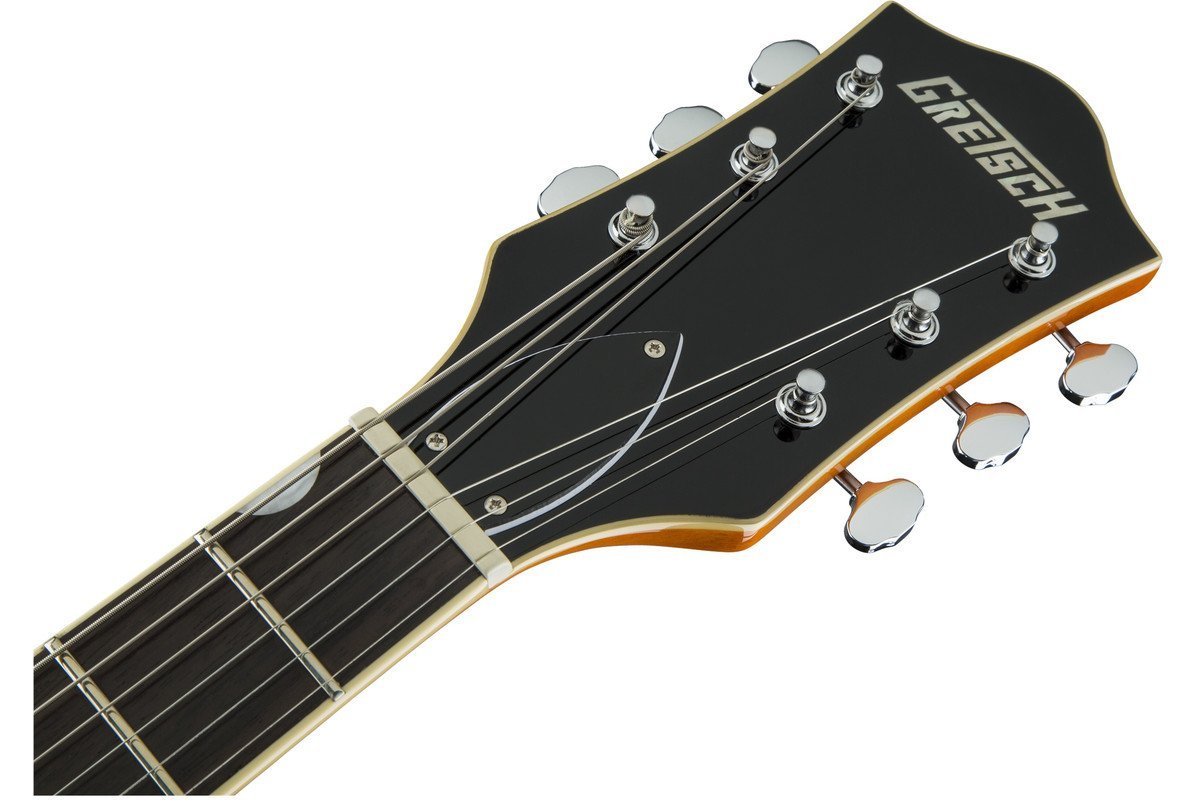 Параметры звука регулируются 2 ручками громкости, 1 ручкой общего тона, 1 ручкой общей громкости и 3-позиционным переключателем звукоснимателей. На гитаре установлен бридж Adjusto-Matic и патентованная тремоло система Bigsby Licensed B70. На Пикгард кремового цвета расположен золотистый логотип фирмы Gretsch.