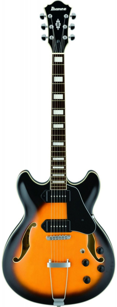 Полуакустическая электрогитара, дека - клен, гриф - красное дерево, звукосниматели - ACH-DS (P90), цвет темно-коричневый.