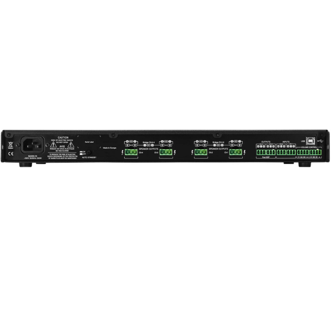 - Входной импеданс, кОм 10 Регуляторы 4x Level Разъемы 4x Euroblock (Input), 4x Euroblock (Output), USB Type B, Euroblock (Volume control)