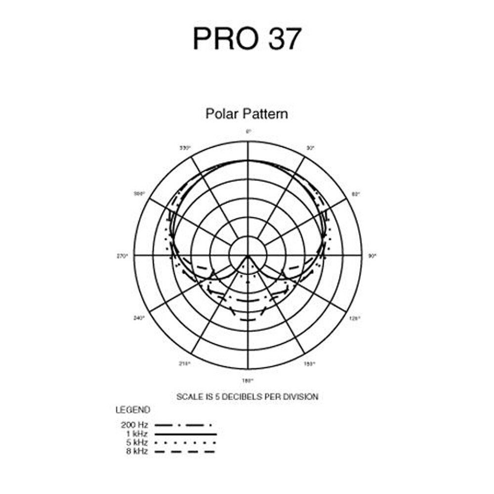 Конденсаторный микрофон с малой диафрагмой PRO37 предназначен для озвучивания акустических гитар, тарелок, фортепиано. Также может использоваться для озвучивания хора. Микрофон обладает расширенной частотной характеристикой, которая позволяет передать тончайшие нюансы звукоизвлечения. Кардиоидная диаграмма направленности отсекает посторонние шумы, выделяя полезный сигнал. Сохраняет стабильность характеристик при воздействии высоких уровней звукового давления.