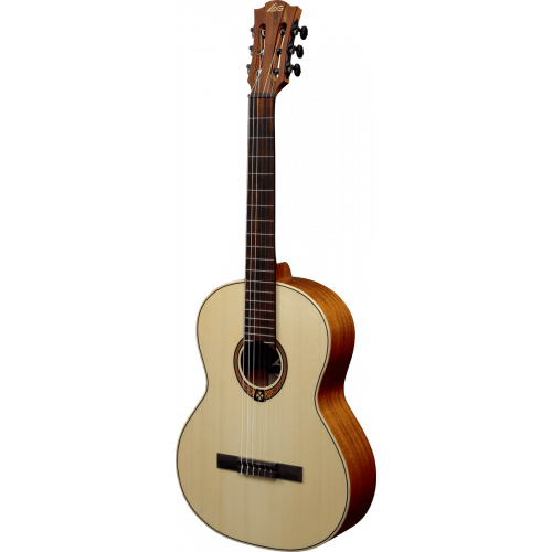 Lag Occitania OC118 – полноразмерная классическая гитара серии Occitania. Верхняя дека из массива ели придает звуку глубины и объема. Нижняя дека, обечайки и гриф изготовлены из темно-коричневого дерева хайя, а бридж и накладка на гриф из палисандра. Порожки выполнены из графита.