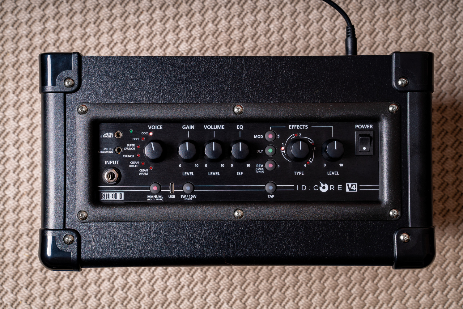 ID:CORE V4 имеет потрясающее звучание, увлекательный звук Super Wide Stereo, CabRig Lite, запатентованную систему управления тембром Blackstar ISF и подключение USB-C, а также впервые снижение мощности до 1 Вт, что позволяет играть на меньшей громкости без ущерба качеству звука. .
