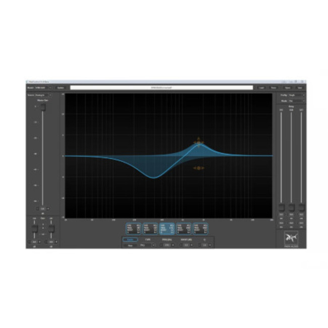 - Встроенный в корпус сабвуфера усилитель 2000 + 1000 Вт RMS с DSP платформой для FIR настройки характеристик звукопередачи