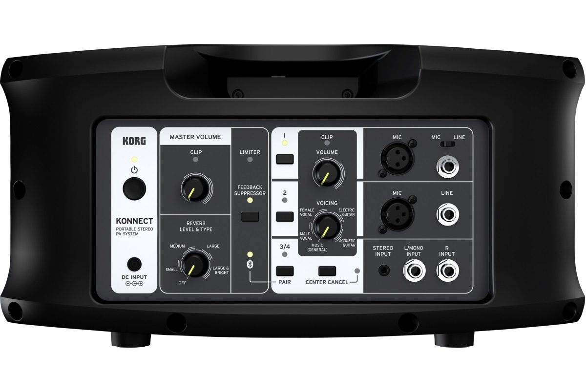 В плане функционала Korg Konnect может похвастаться 4-канальным встроенным микшером, мощным, реализованных на базе SHARC DSP процессором эффектов и Bluetooth-интерфейсом. Последний, кстати, предназначен не только для стриминга музыки с мобильных устройств, но и для беспроводного управления микшированием со смартфона или планшета.