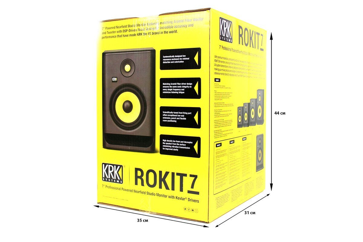 беспечивают одинаковую звуковую целостность на всех частотах и сводят к минимуму усталость при прослушивании; Настройки звучания для комнаты на основе DSP с 25 визуальными настройками графического эквалайзера помогает минимизировать и устранить проблемы в акустической среде; Приложение KRK: акустический анализатор помещений в реальном времени, разработанный для настройки монитора под особенности вашей комнаты для лучшего мониторинга и быстрого микширования; Разработанный по индивидуальному заказу эффективный усилитель мощности класса D равномерно руководит динамиками при пониженных рабочих температурах и улучшает целостность звука; Встроенный лимитер автоматически активируется на максимальном уровне усиления, чтобы поддерживать сбалансированный звук, защищать систему и предлагать лучшую и более широкую динамику; Специально разработанный корпус с низким резонансом для минимального искажения и окраски; Научно настроен фазоинвертор предлагает исключительное расширение низких частот, панч и гибкое позиционирование в помещении; Пенная подставка для монитора высокой плотности отделяет динамик от поверхности, сводя к минимуму передачу вибрации для повышения четкости.