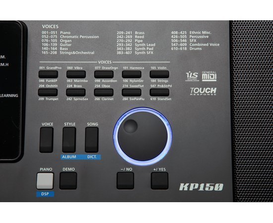 Kurzweil KP150 - Синтезатор, 61 клавиша, чувствительная к нажатию клавиатура, полифония 128 голосов, 200 стилей автоаккомпанемента, умная система обучения, эффекты, АС 70 Вт, USB, питание от 6 батареек АА или от блока питания, подставка для нот в комплекте. Полноразмерная, чувствительная к скорости нажатия, синтезаторная клавиатура с 61 клавишей с регуляторами высоты тона и модуляции. Наслаждайтесь широким выбором акустических и электронных звуков, используя фортепьяно Triple Strike, а также различные органы, гитары, струнные и синтезаторы. Используйте двойную функцию для объединения различных звуков, таких как фортепиано и струнные. Встроенные интерактивные шаблоны предлагаются в самых разных музыкальных жанрах, поэтому у вас под рукой целая группа. С помощью простых в использовании функций записи песен вы можете записывать свои собственные исполнения на клавиатуре. Инновационный Performance Assistant помогает вам выполнять различные идиоматические музыкальные фразы, которые могут быть вызваны нажатием всего нескольких клавиш.
