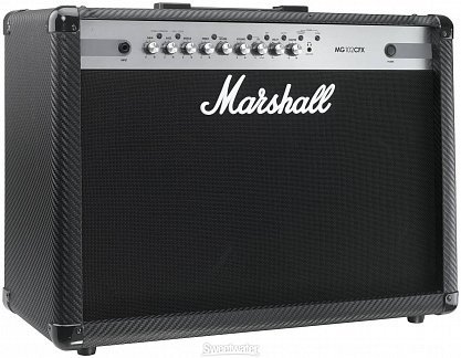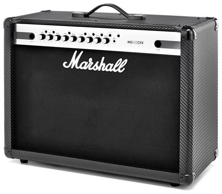 MARSHALL MG102CFX гитарный комбо усилитель с 100 Вт мощности и двумя 12" динамиками, включая 4 переключаемых канала и 3-полосный эквалайзер. А также характеризующийся демпфированием, переключаемым луп эффектом и линейным входом для музыкальных плееров. Этот усилитель превосходное подражание ламповых усилителей и безупречно работающий как при живом исполнении, так и в студии.