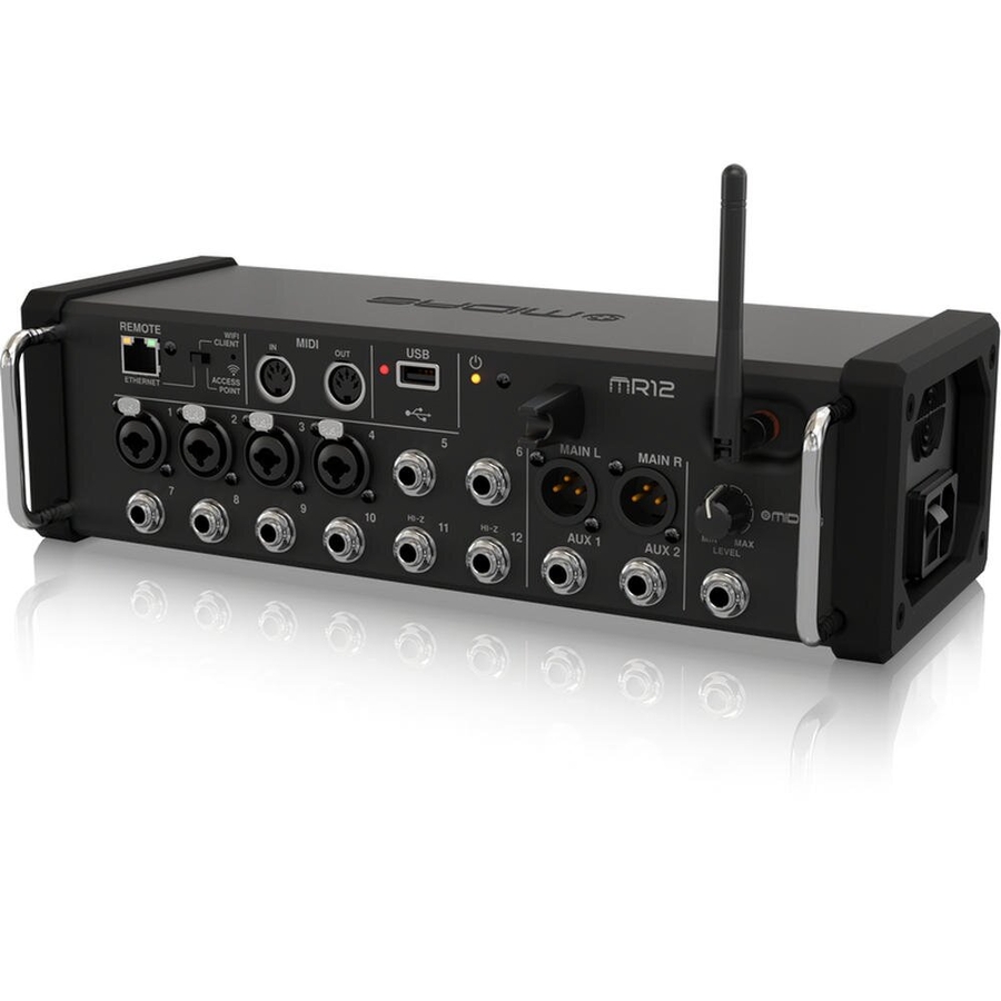 Midas MR12 - Рэковый цифровой микшерный пульт/стейджбокс, 12 каналов, 4 микрофонных/линейных предусилителя Midas PRO на XLR-1/4", встроенный USB аудио интерфейс, управление по Wi-Fi через iPad и Android-планшеты, MIDI I/O, Ethernet разъем.