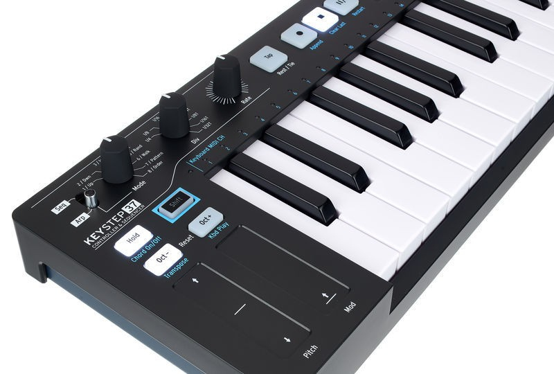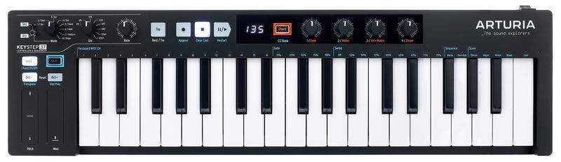 Это последнее издание семейства KeyStep добавляет светодиоды RGB на каждую клавишу для мгновенного отклика на вашу последовательность, арпозицию и масштаб, а также 4 ручки со светодиодным экраном, которые обеспечивают мгновенный доступ к вдохновляющим выразительным инструментам и настройкам MIDI для полного творческого контроля. Также были добавлены квантование шкалы, позволяющие сопоставить 3-октавный диапазон клавиатуры со шкалой по вашему выбору в режиме масштабирования.