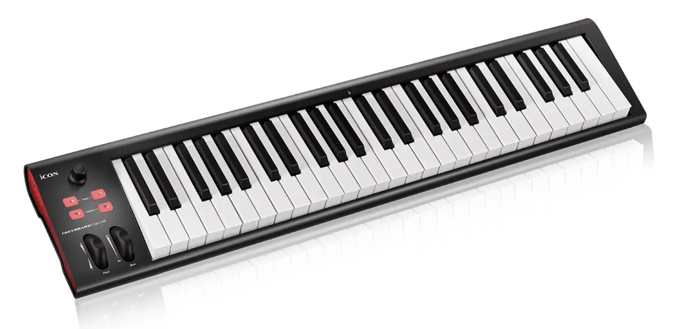 Icon iKeyboard 5Nano - контроллер MIDI-клавиатуры, который впечатлит музыкантов, артистов и продюсеров, нуждающихся в профессиональных функциях. Девайс сочетает в себе 49-клавишную клавиатуру фортепиано с полувзвешенным действием, а также одноканальный DAW, и это все в прочном металлическом корпусе. Он имеет колеса изменения высоты звука и модуляции, а также кнопки октавы и транспонирования, которые можно использовать со встроенными заводскими пресетами для DAW, таких, как Cubase, Nuendo, Logic Pro, Pro Tools, Ableton Live, Samplitude и Studio One.