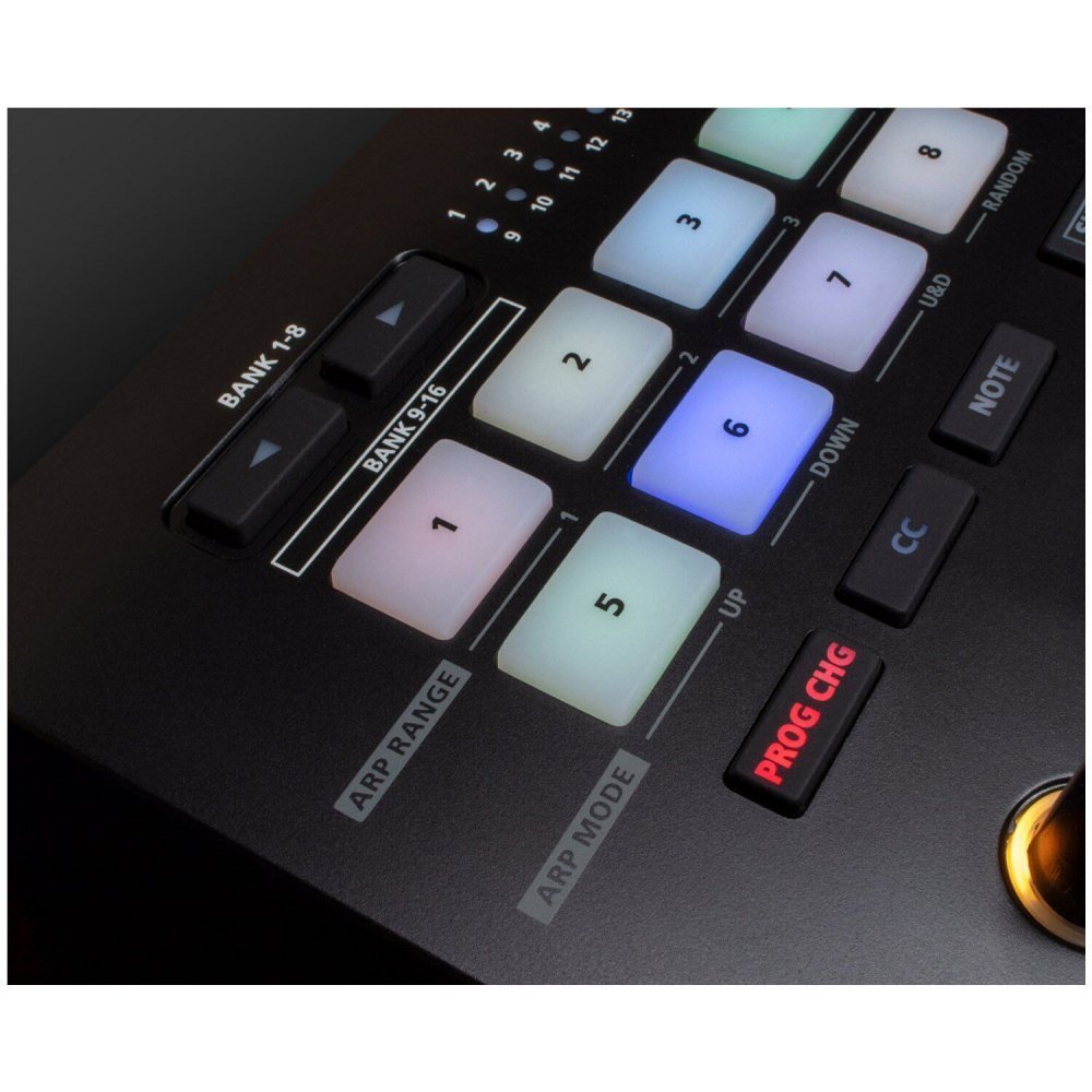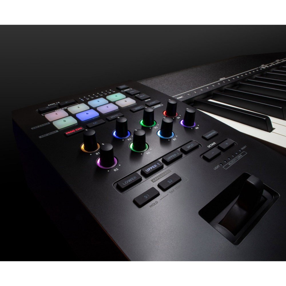 Клавиатура имеет прочный деревянный корпус, а на рабочей поверхности A-88MKII расположены элементы управления, 8 регуляторами с RGB подсветкой, 19 управляющих кнопок, рычаг pitch bend - modulation и 8 универсальных кнопок-пэдов, которые поддерживают назначение команд, встроенный арпеджиатор, режим аккордов.