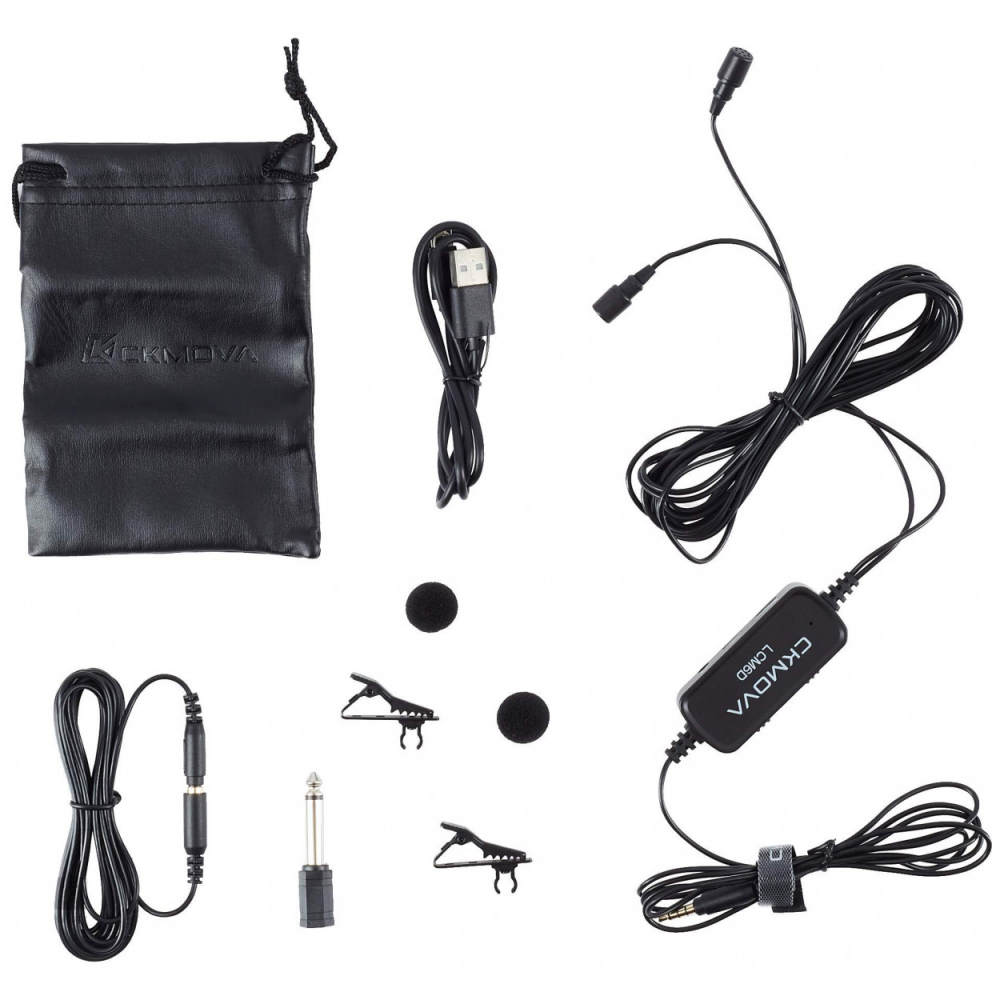 CKMOVA LCM6D – это всенаправленный двойной петличный микрофон с широким спектром применения. Микрофон работает со смартфонами, камерами и другими устройствами, которые имеют TRRS разъем, а общая длинна кабелей дает большую свободу при использовании. Благодаря функции Plug & Play микрофон можно подключить к устройству и сразу же наслаждаться его работой. При полной зарядке аккумулятора микрофон работает около 40 часов. Общая длинна шнуров позволяет применять микрофон в различных ситуациях – от студийной съемки до записи интервью или ведения видеоблогов.