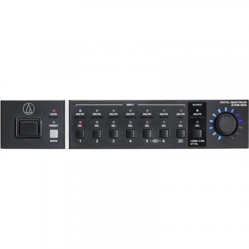 ATDM-0604EU – усилитель мощности позволяет выбирать режимы микширования "gate" или "gain sharing", обеспечивают высококачественный аудиосигнал на выходе без обратной связи, примеси окружающего шума или эффекта гребенчатого фильтра. Органы управления и LED индикаторы на передней микшерной панели позволяют пользователям легко настраивать уровни на входах и выходах, регулировать чувствительность, выбирать и вызывать пресеты, включать и выключать фантомное питание, НЧ фильтр, подавитель акустического эха (AEC), выбирать режим микшера. конфигурацию (автоматический или статический адрес).