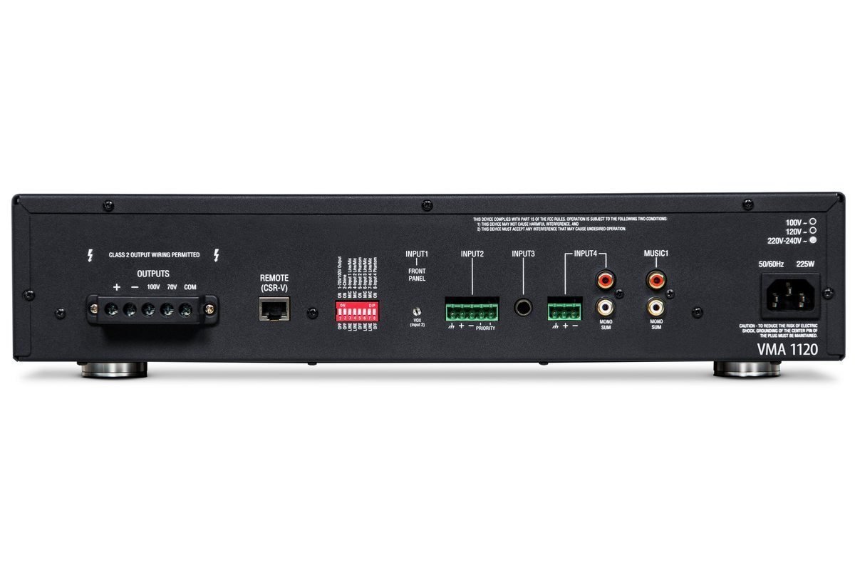 Компания JBL представляет усилитель мощности JBL VMA1120, предназначенный для коммерческих инсталляций. Микшер имеет 5 входов и 1 выход. Его мощность — 120 Вт. Он может использоваться в торговых центрах, театрах, многоэтажных, многоуровневых строениях и прочих местах общего пользования. Усилитель JBL VMA1120 оснащен МР3-плеером с USB-портом и поддержкой Bluetooth. Он может работать при низкоомной нагрузке — 4 или 8 Ом, на линии 70/100 В. Для регулировки звучания есть независимые регуляторы низких и высоких частот для каждого выходного канала. Реализована возможность работы с настенными контроллерами JBL CSR-V. Лицевая панель микшера имеет стильный и современный дизайн. В комплекте поставки находится крепление в рэковую стойку.