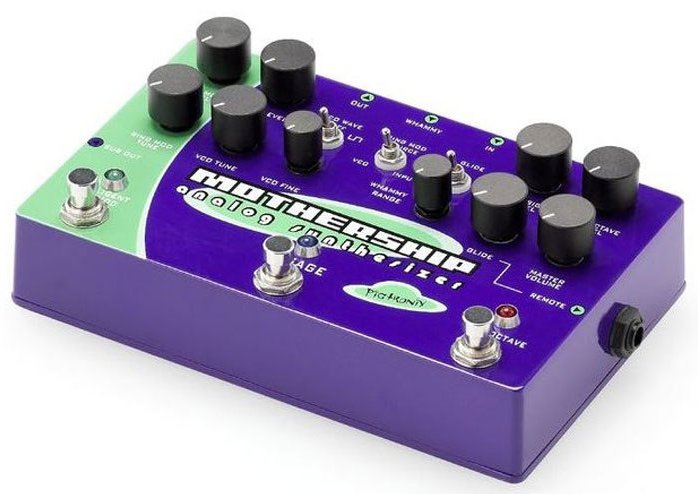 Педаль Pigtronix Mothership - уникальный аналоговый синтезатор с VCO, Сб-октавер и первым в мире Интеллектуальной Ринг-модулятором. Удивительно быстрое распознавание нот и потрясающее аналоговое звучание делают этот синтезатор идеальным для использования с гитарой, басом, духовыми, вокалом или другими музыкальными инструментами. Для работы с прибором не требуется специальный интерфейс. В основе этой педали лежит новейшая разработка - уникальная схема для распознавания звуков, позволяет достичь быстрого и качественного перевода звуковых колебаний в электромагнитные. Mothership - качественный аналоговый моно-синтезатор с бесчисленным набором опций и настроек. Педаль способна выдавать невероятные звуки, и при этом небольшая в размере и проста в использовании. Готовы ли Вы к путешествию в «параллельные миры» музыки? VCO (voltage controlled oscillator/осциллятор, управляемый напряжением) - основная часть Mothership, которая дает на выходе треугольные или прямоугольные волны. VCO работает в диапазоне от двух октав ниже входного сигнала до двух октав выше входного сигнала и нормально функционирует с целым рядом пятиструнных басов и шестиструнных электрогитар. Также существует возможность добавить эффект «глайд», который позволит выполнять аккуратные слайды от ноты к ноте или сумасшедшие глиссандо через несколько октав. Суб-октавер - понижение октав от Pigtronix заставит трястись стены вашего дома! Отдельный выход во Суб-октавер позволяет перенаправлять низкие частоты Сб-октавер и ринг-модулятора на отдельный басовый усилитель для достижения действительно глубокого звучания. Интеллектуальный ринг-модулятор - это уникальная разработка от Pigtronix, прибор, отслеживающий высоту звука. Настройте модулятор в соответствии со своими предпочтениями, и он будет следовать за каждой сыгранной нотой, сохраняя выбранный вами интервал между звуком на входе и выходным сигналом. Специальный переключатель позволит выбирать между неизмененным сигналом или сигналом от VCO. Опции глайд и Whammy также доступны и при работе с ринг-модулятором, позволяет музыкантом смешивать эффекты на свой вкус. Добро пожаловать в мир аналоговых педалей будущего!