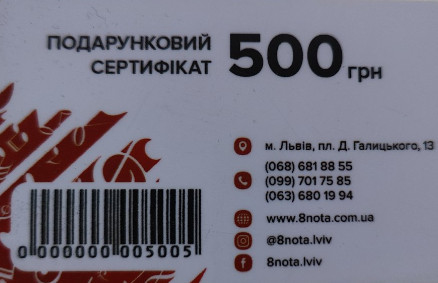 Графік роботи магазину "8 НОТА": З понеділка по суботу - 10:00-19:00. У неділю - 11:00-19:00. Без перерви на обід