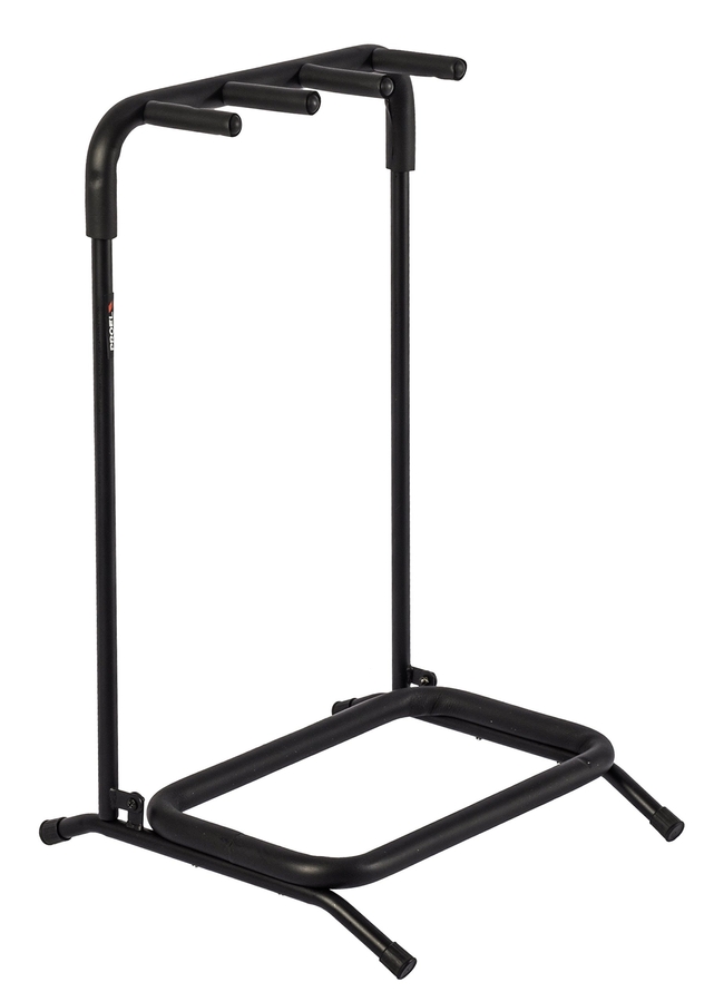 Универсальная складная трехместная стальная подставка для размещения нескольких гитар (классических, акустических, электрических и бас-гитары). Контактные поверхности изготовлены из мягкого вспененного материала, обеспечивающего защиту инструментов. Матово-черное покрытие, устойчивое к царапинам.