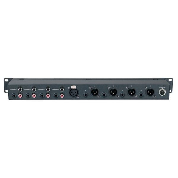 Модель AMIX4Z имеет четыре линейных выхода RCA, четыре линейных входа на 6,3-миллиметровых гнездах (типа «Jack») и один вход XLRдля микрофона BM100. Все пять входов имеют независимую настройку и регулировку громкости. Можно установить общее (MainMaster) управление, с возможностью переключать выход наушников между выходами четырех зон.