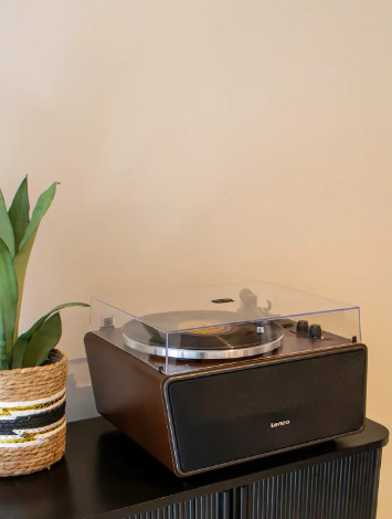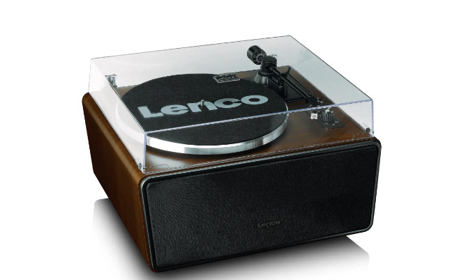 Предлагаем Вашему вниманию новинку винилового проигрывателя торговой марки Lenco - Виниловый проигрыватель Lenco LS-470WA c Bluetooth и 4-мя встроенными динамиками. Корпус проигрывателя из МДФ и опорный диск из алюминия обеспечивают высокое качество звука без лишних вибраций, а ременной привод – плавное скольжение диска. Устройство оборудовано прямым тонармом из углеродного волокна, на котором предустановлен магнитный картридж Audio-Technica AT3600. Выбор скорости возможен между 33 и 45 об./мин (адаптер на 45 оборотов идет в комплекте с устройством). Проигрыватель оснащен 4 встроенным колонками общей мощностью 80 Вт и отключаемым усилителем. При желании подключить собственный усилитель или акустическую систему в проигрывателе предусмотрены RCA-порты. Bluetooth ver.5.0. позволяет воспроизводить любимые произведения с внешних источников, таких как смартфон, планшет и т.д. Так же для подключения внешних устройств, проигрыватель оснащен дополнительным разъемом звукового входа AUX 3.5мм. Наличие USB-PC провода в комплекте позволяет осуществлять оцифровку записи в формате mp3 c помощью приложения Audacity.