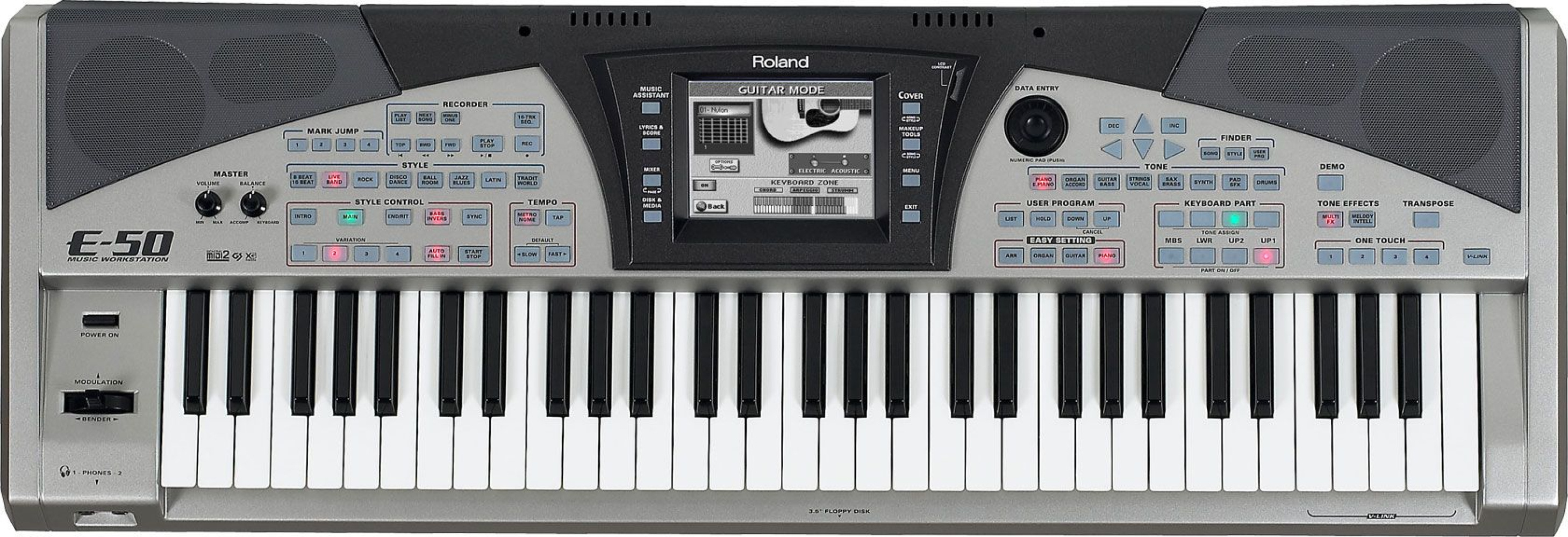 Благодаря своим 64-голосовым звуковым механизмам полифонии E-60 та E-50 обеспечивають впечатляющее качество звука. Благодаря 512 МБ WAVE ROM на борту каждого, они могут похвастаться наилучшими звуками с библиотеки Роланда. Много новых студийных гитар, аккордеонов и много другого обеспечивают надреалистический опыт.