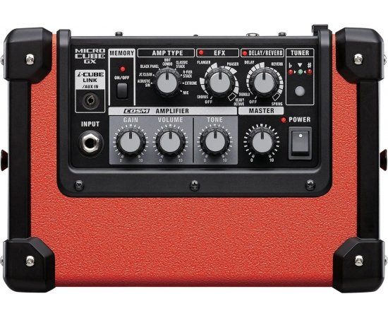 Гитарный усилитель ROLAND MICRO CUBE GX (красный) Мировой бестселлер вот уже на протяжении 10 лет, MICRO CUBE самый популярный комбоусилитель с питанием от батареек на все времена. Новый MICRO CUBE GX сохраняет минимальные размеры и великолепный звук своих легендарных предшественников, добавив много нового, включая i-CUBE LINK, тюнер, и функция MEMORY, которая сохраняет ваши настройки. Массивный, хайгейн эффект EXTREME, HEAVY OCTAVE, i-CUBE LINK открывает вам множество возможностей для занятий и записи вместе со встроенным аудио интерфейсом, для работы с музыкальными приложениями для ваших iPhone, iPad или iPod Тип: Транзисторные Мощность: 3 Вт Количество динамиков: 1 Диаметр динамиков: 5 " Модели усилителей: 8 типов COSM усилителей Модели эффектов: 5 типов Входы: AUX (1/8" - 3.5 мм), Инструментальный вход (1/4" - 6.3 мм) Встроенный тюнер: Есть Размеры: 247 x 172 x 227 Вес: 2.7 кг