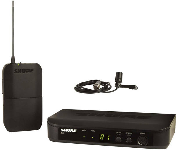 Высококачественный петличный микрофон Shure для публичных выступлений. В комплект входят аналоговый приёмник и передатчик.