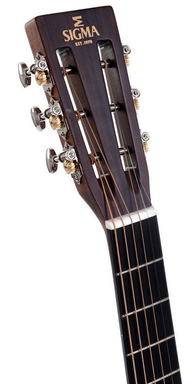 Производство гитар Sigma начала компания Martin в 1970 году. Мировой лидер по изготовлению акустических гитар создал новую компанию, производившую бюджетные аналоги собственной продукции. Поэтому неудивительно, что логотипы обеих компаний имеют одинаковый шрифт, подчеркивающий родство производителей. Самое главное, что SigmaGuitars получили все технологии и патенты от компании Martin, поэтому каждая гитара Sigma изготовлена по самым высоким стандартам. Все инструменты производятся из высококачественных материалов и проходят тщательную проверку специалистами. Для изготовления гитар используют цельную ситхинскую ель, индийский палисандр, красное дерево, африканский аванкол, кедр, порожки изготавливаются из кости. Гитары Sigma оборудованы высококачественными комплектующими от мировых производителей, таких как Fishman, Matrin и Grover. Компания Sigma уверена в своей продукции, поэтому на каждой гитаре есть этикетка с перечнем всех материалов и технических характеристик. Гитары Sigma обладают насыщенным и ярким звуком, а секрет звучания не только в древесине. Поскольку компания использует технологии производства Martin, каждая гитара имеет уникальную систему брасов (пружины). Именно поэтому каждая гитара идеально резонирует и создает объемный, теплый звук. Звучание гитар действительно уникально, ведь Sigma, создали изящный, высококачественный продукт за умеренную цену. Модельный ряд гитар Sigma невероятно широк. Компания производит гитары различных форм и конструкций. Форму того или иного инструмента легко узнать из первых букв модели гитары: D – дредноут, 000 – фолк, J – джамбо, C – классическая гитара. Породы дерева также отображаются в названии модели. Верхняя противня, абсолютно в каждой гитаре Sigma, изготавливается из цельной древесины ситхинской ели или красного дерева. Задняя противень и обечайка изготавливается из красного дерева – М или палисандра – R. Красное дерево также используют для изготовления грифа, а накладка грифа и струнодержатель из черного дерева. Порожки гитар Sigma производятся из кости, что характерно для гитар высокого уровня. Есть модели с вырезом, они имеют маркировку – С, а также, есть множество электроакустических гитар, обозначаемых буквой Е.