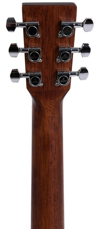 Верхняя противня изготовлена из цельной древесины махогани. Корпус тоже производится из массива красного дерева. Такое дерево придает мягкое звучание с ровной динамикой, а также, каждая струна звучит отчетливо. Поэтому, гитара Sigma TM-15 является идеальным инструментом для игры пальцами или сольных партий. Гриф производится из красного дерева, накладка из индийского палисандра. Из-за уменьшенной формы корпуса длина мензуры составляет 584 мм., ширина грифа в области верхнего порожка составляет 43 мм. Голова грифа оборудована литой хромированной механикой, которая также имеет немного уменьшенный размер. Колышки невероятно комфортны и идеально держат строй.
