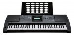61, чувствительная к силе нажатия, клавиша синтезаторного типа. LCD дисплей. 32-голосная полифония. 300 тембров, включая 3 барабанных установки. Есть режим наслоения звуков. Изменение октавы +/- 1, транспонирование +/- 6 полутонов. General MIDI, DSP. Эффекты: включения / выключения. 200 стилей автоаккомпанемента. 1-трековый рекордер. 100 Демо записей. 100 композиций Music Library. Метроном. Акустическая система: 10 Вт x 2 2 стерео-динамика. 1 выход для наушников. 1 порт для педали Sustain (продается отдельно). Аудио выходы: RCA L / R. Микрофонный вход (микрофоном не комплектуется). MIDI по USB. Размеры: 14.5 x 95.5 x 36 см. Вес: 4.75 кг (без батареек). Питание от внешнего источника или 6 батареек AA