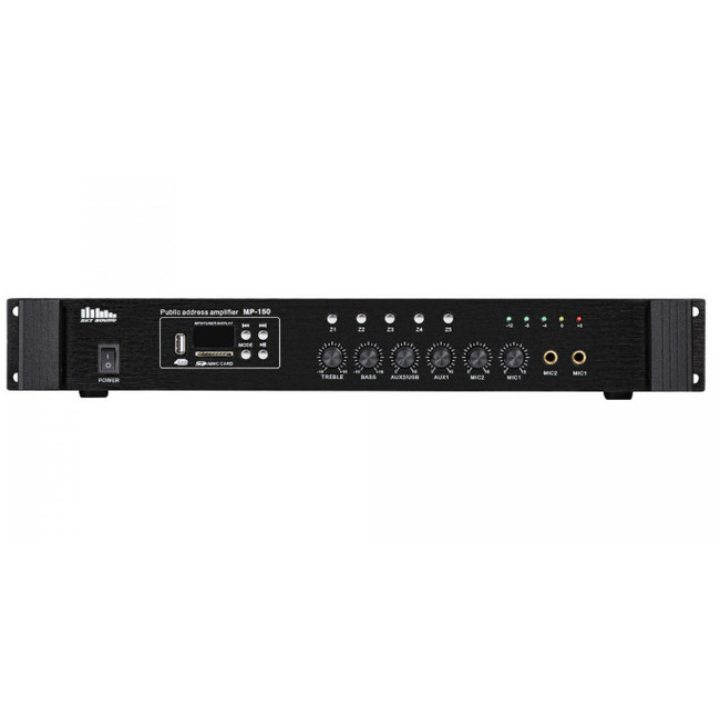 SKY SOUND MP-150 (5ZONE) - трансляционный усилитель мощности, предназначенный для подключения к акустическим системам музыкальной трансляции и голосового оповещения.