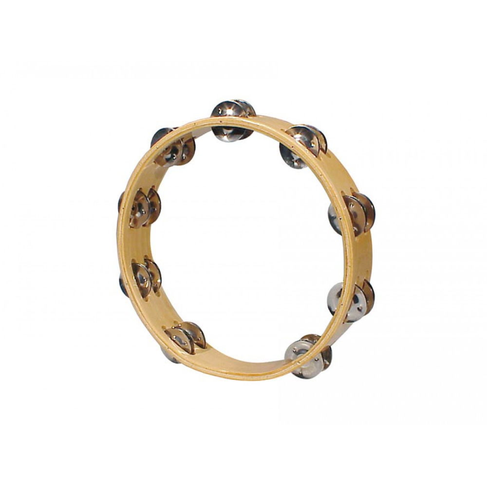 Деревянный тамбурин 10” без мембраны. 18 пар тарелочек размещены в два ряда (по 9 в каждом).