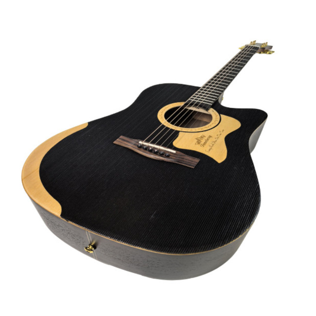 Toneberg TC-SC сочетает сдержанную элегантность и выразительный характер, в котором каждая деталь формирует цельный образ инструмента. Контрастная верхняя дека из массива ели в тёмном исполнении подчёркивает форму корпуса и создаёт глубокое, визуально насыщенное восприятие гитары.