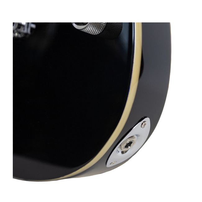 2-точечный тремоло-бридж обеспечивает плавное вибрато и стабильный строй, а полностью закрытая хромированная фурнитура придаёт инструменту надёжность и блеск. Один регулятор громкости и один тона делают управление простым и интуитивным.