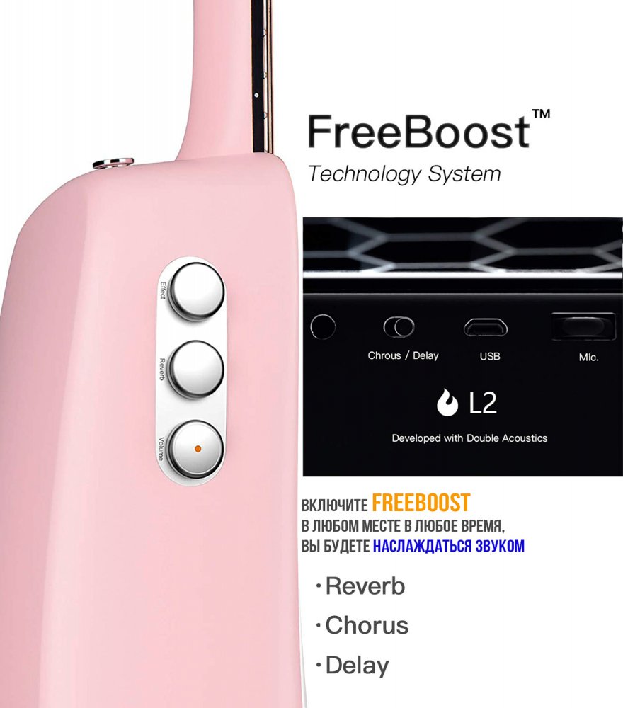 В гитаре интегрировано новую разработку - преамп L2. Он обогащает и усиливает перкуссионных свойства гитары независимо от того вы подключены или нет. В вашем распоряжении доступны такие эффекты как: Chorus, reverb, delay.